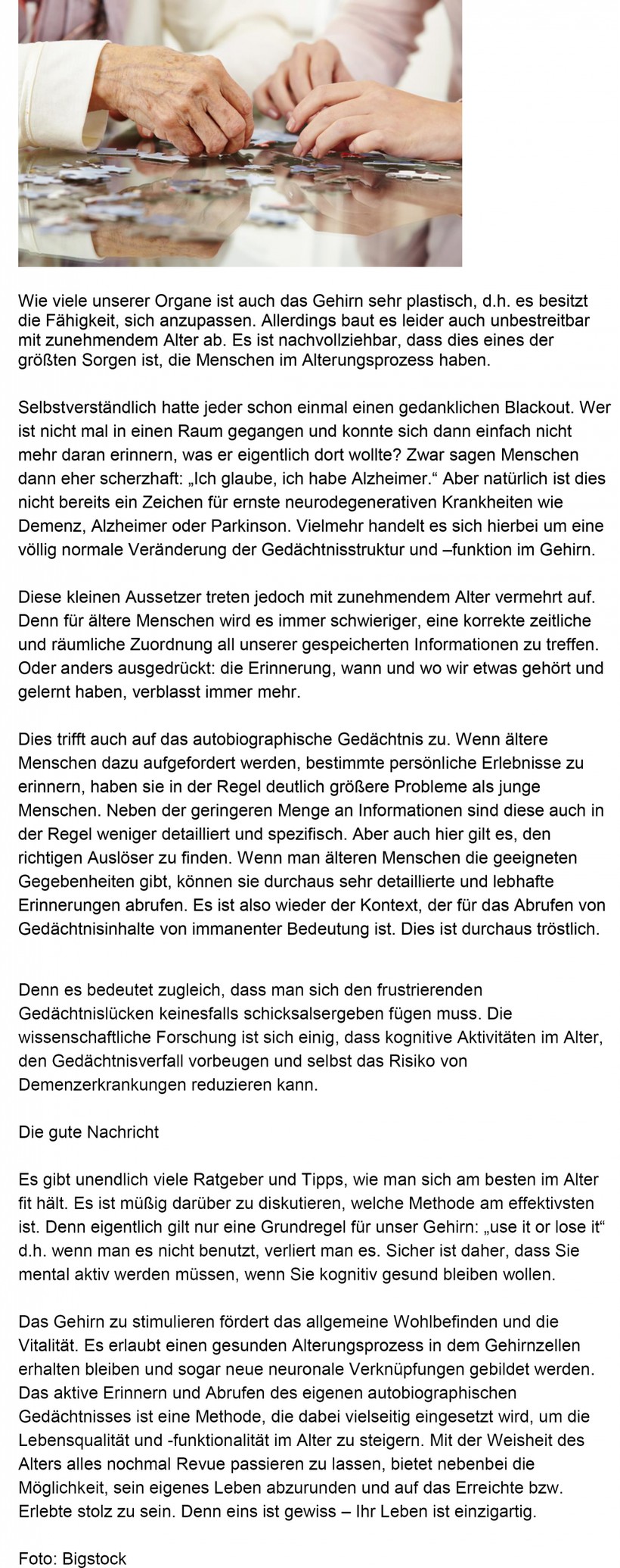 Aktiv im Alter - Ihr Gedächtnis - Memories